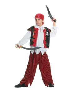 Déguisement de pirate pour garçon rouge, noir et blanc