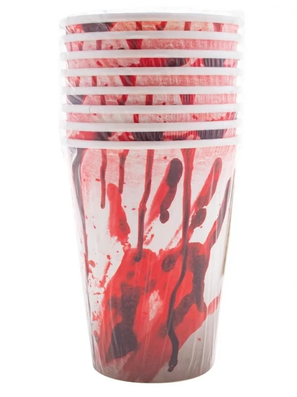 Les verres en carton tachés de sang pour Halloween est vendus en lot de 8 unités