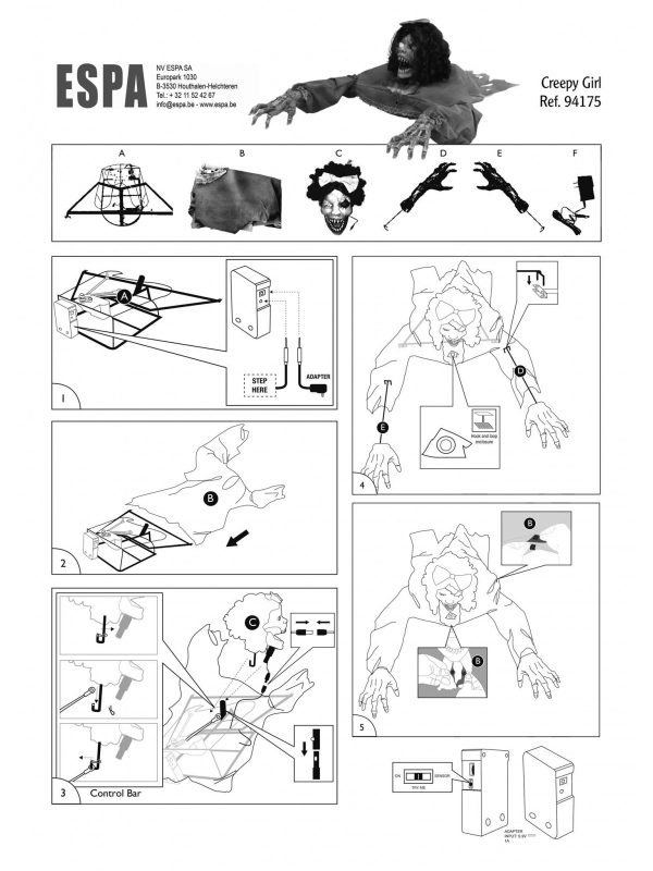 Une notice de montage est fournie pour un assemblage facile. Ajoutez cette décoration terrifiante à votre soirée d’Halloween pour une ambiance effrayante et inoubliable.