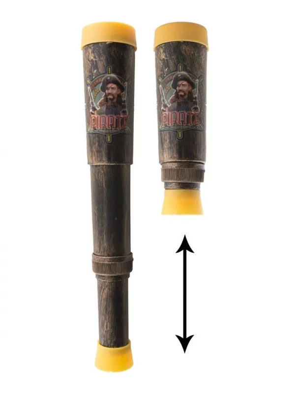 La longue vue de pirate pour enfant, on y pense pas souvent, celle que nous vous proposons est en pvc, elle se rétracte. Elle a l’aspect bois et porte une image de pirate.