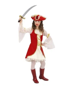 WIDMANN Déguisement Pirate Fille Rouge Et Blanc (robe, Chapeau)