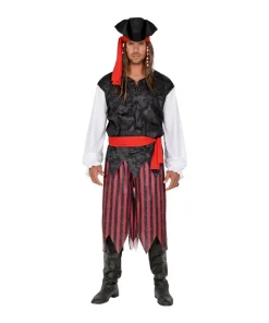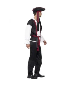Smiffys Déguisement Pirate Homme Noir ( Haut, Pantalon, Ceinture Et Tricorne Avec Cheveux)
