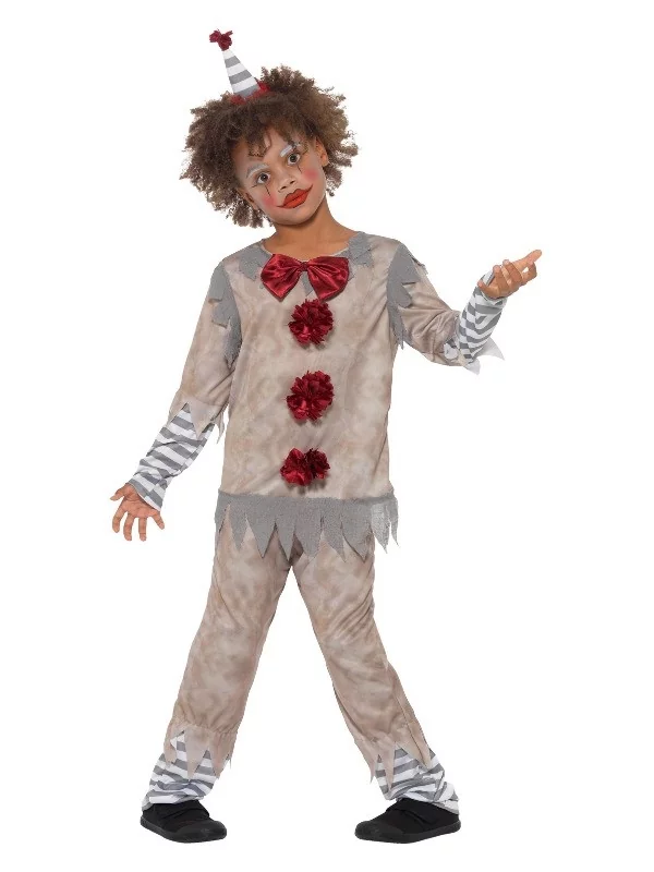 Envie de déguiser votre enfant en un clown vintage ? Smiffys vous propose ce magnifique costume très original conçu en polyester. Il se compose d’une tunique grise, dont les manches présentent un effet déchiré et des rayures blanches et grises. Le devant est décoré avec un nœud papillon et 3 fleurs rouges.