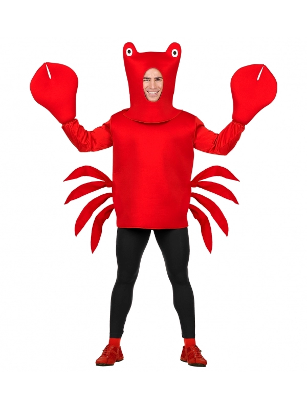 Parmi nos déguisements les plus originaux, nous avons ce crabe rouge pour homme. Tout invite à l’humour et au rire.