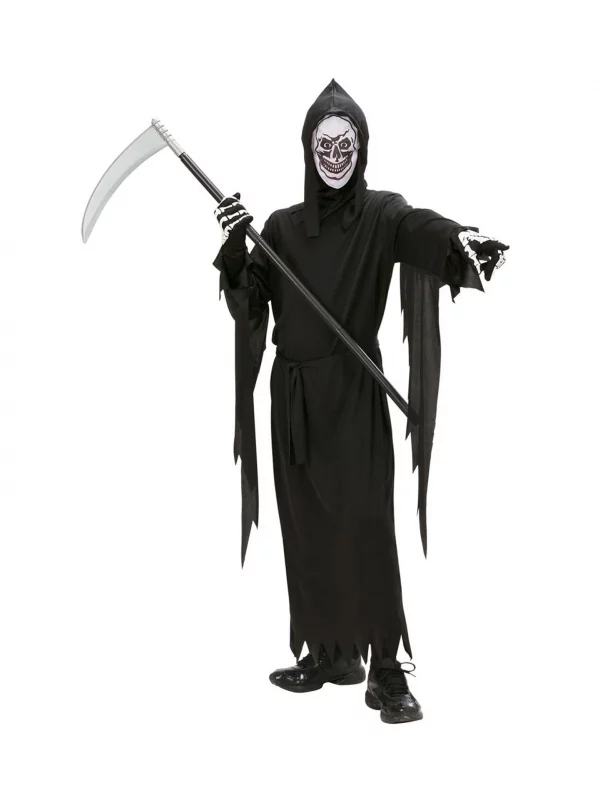 Déguisement Faucheur enfant noir (tunique, ceinture, masque avec capuche)
