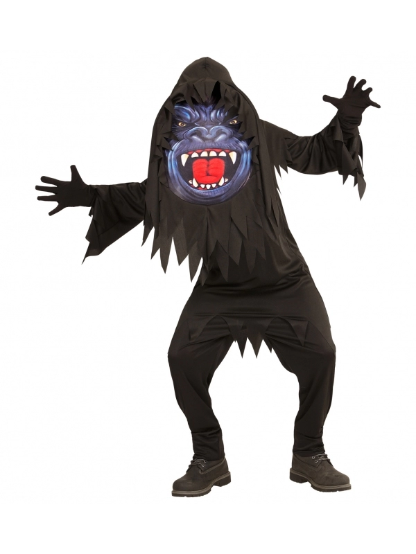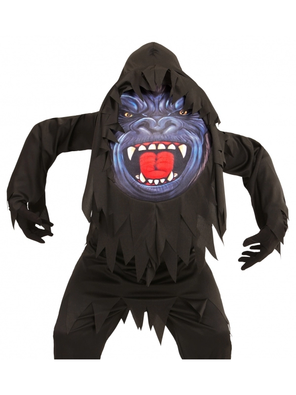 Offrez à votre enfant un déguisement original et effrayant pour Halloween ou pour une fête costumée. Ce déguisement de gorille comprend une tunique et une tête géante couvrant entièrement le buste et la tête de l’enfant. La bouche est ouverte laissant apparaître les dents et une langue rouge pour un effet des plus réalistes.