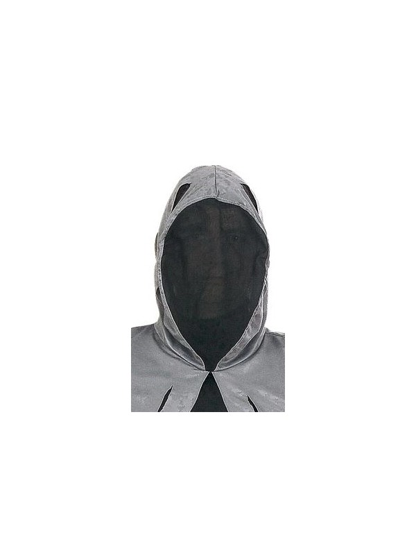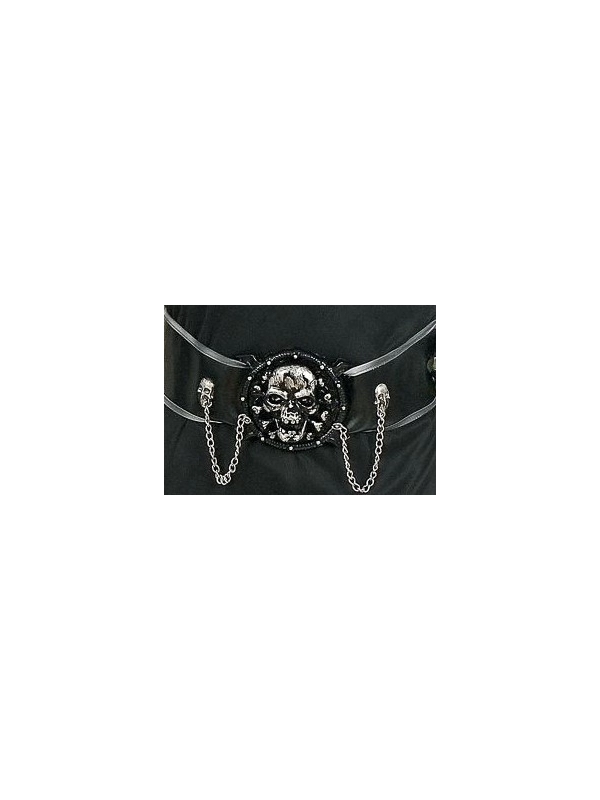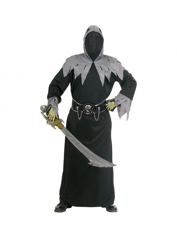 Déguisement prince de la mort avec longue robe noire et grise, comprend un masque pour un visage invisible et ceinture avec boule crâne 3D et chaines.