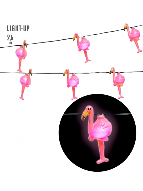 Décoration tropicale pour vos soirées d’été avec cette guirlande lumineuse de Flamands Roses de 2.5 m.