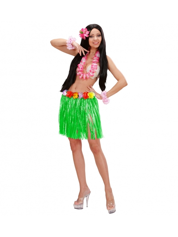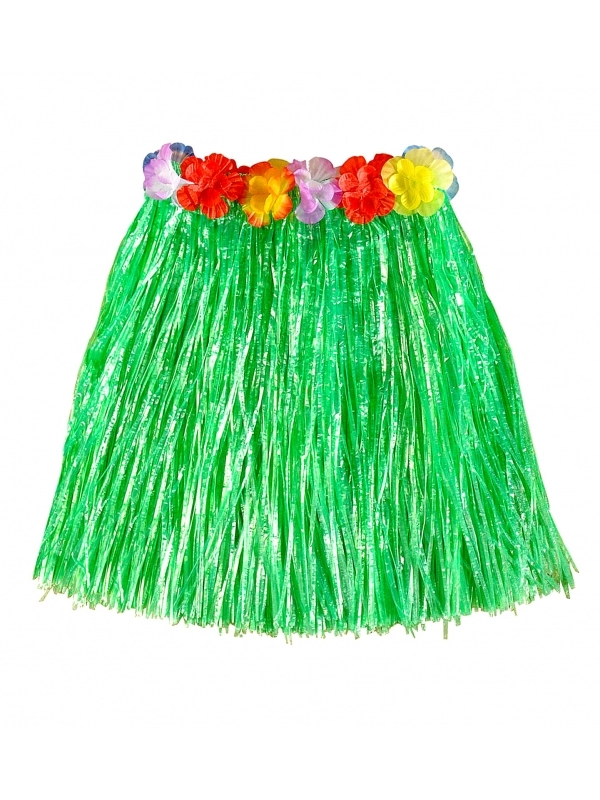 Jupe Hawaïenne femme verte avec fleurs (45 cm)