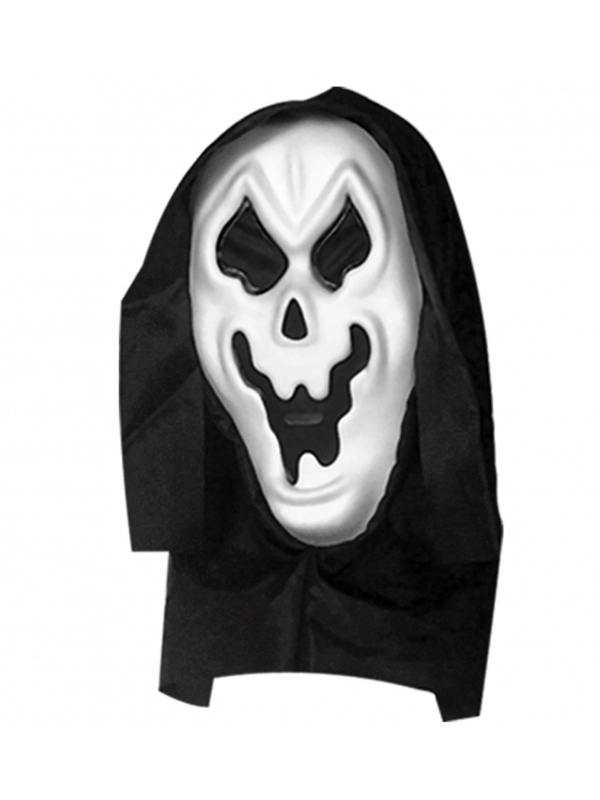 Masque de fantôme avec capuche noire et filet dissimulant les yeux