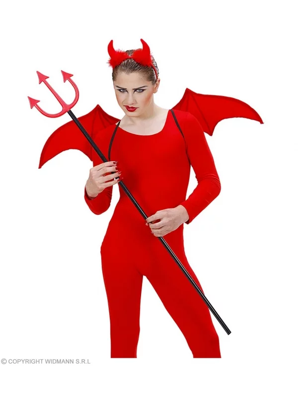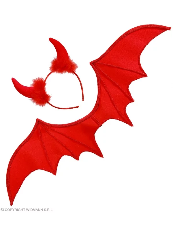 La couleur de ce set composé d’ailes et de serre-tête cornes est d’un beau rouge vif, sa texture à un aspect feutrine.